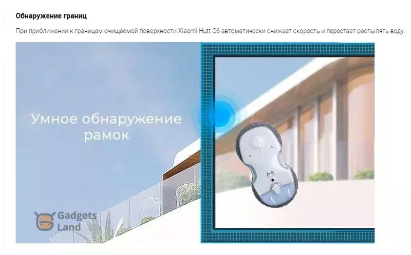 Для того, чтобы вода не попадала на раму, что важно, если рама сделана из дерева, Hutt C6, приближаясь к раме, замедляется и останавливает разбрызгивание. Таким образом, вода не попадает на стекло ближе, чем в 6 мм от рамы.